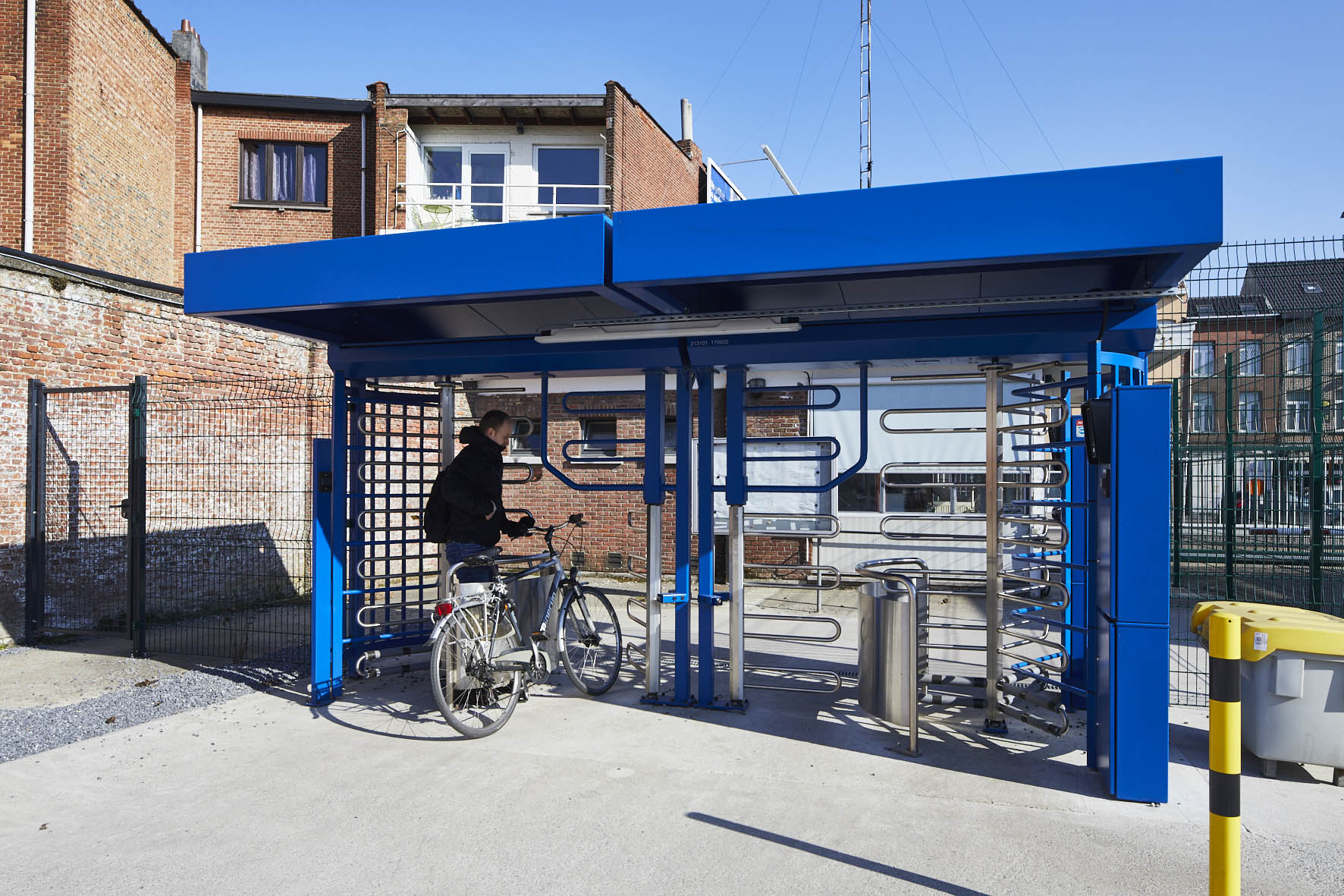 Ein Drehkreuz mit Fahrradzugang ist die Lösung für Besucher mit einem Fahrrad. Mit dem Fahrrad zur Hand trittst du hinein. Ein 1 m hoher Zaun trennt den Fußgängerzugang vom Fahrradzugang.